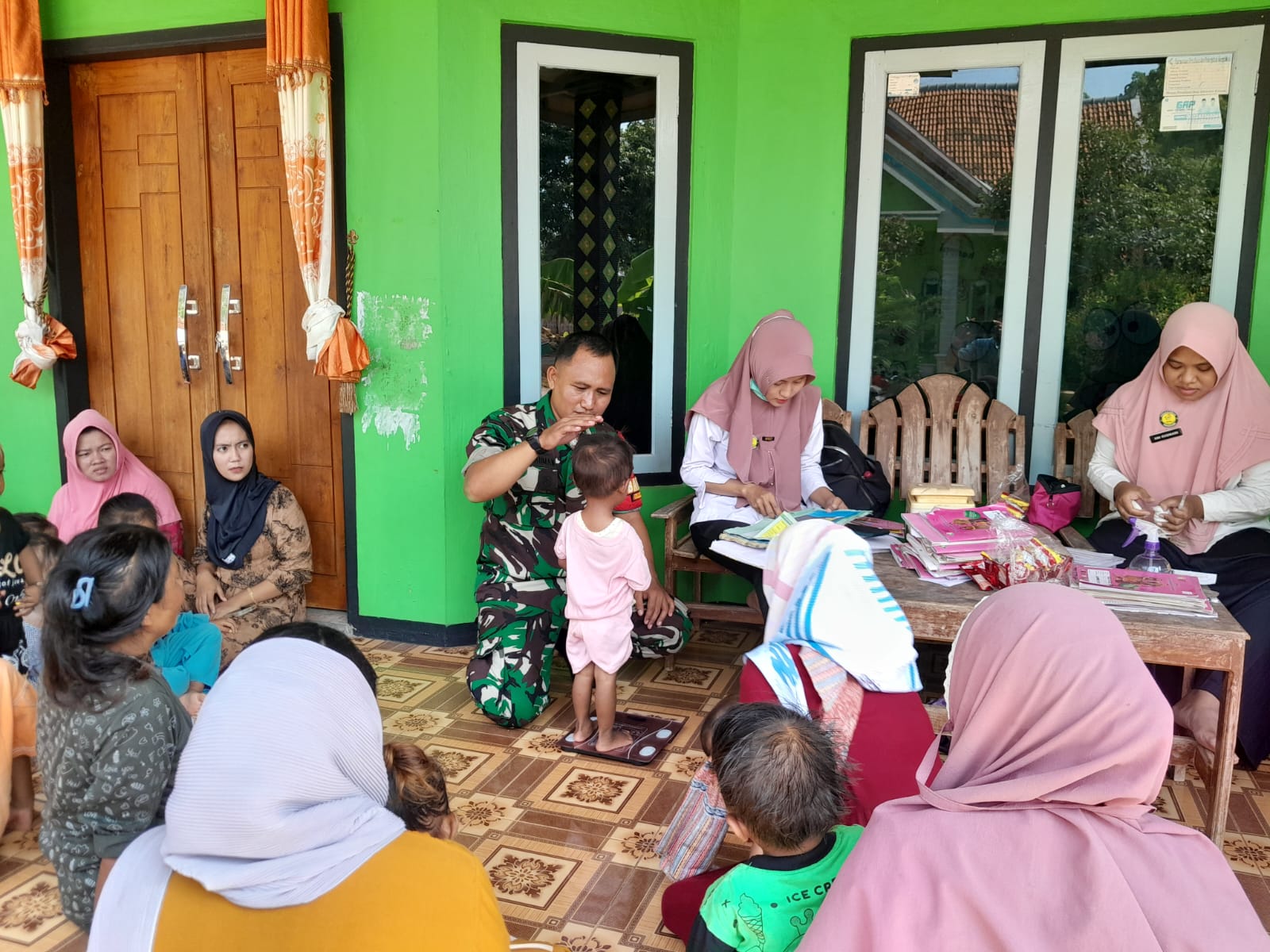 Dalam pendampingan tersebut, Serda Nurrahman memberikan arahan kepada ibu-ibu di Dusun Angsanah untuk menjaga pola makan dan memberikan asupan gizi yang cukup pada anak-anak.